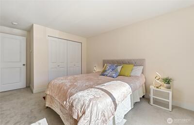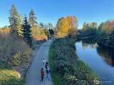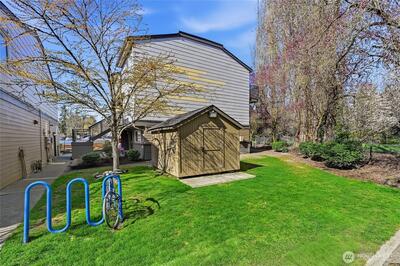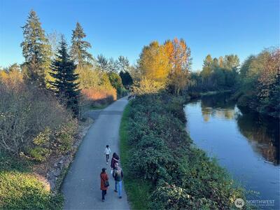 Supremely well-positioned, southwest-facing 2bed, 1.5bath, two-story townhome in the heart of Redmond. Freshly painted throughout. Gorgeous laminate floor on main level features open/sun-drenched living and dining areas, updated kitchen w/ granite countertops and newer stainless appliances - plus a pantry, half bath, entry closet and convenient under-stairs storage. Upper level w/new carpet features two bright bedrooms, fully renovated bathroom, laundry w/ shelving and a hallway closet. Enjoy a spacious patio w/ flower garden. Designated parking in front of the home. The Sammamish River Villas underwent a comprehensive renovation around 2015(roof,siding,windows,drywall,systems). Amenities are EV charging, playground, bike house, ample guest parking and clubhouse with pool/kitchen/expansive entertainment space/a currently being-equipped gym. No rental cap. Pet-friendly. Strong HOA covering water/sewer/garbage. The fenced community backs to a large green field adjacent to the Burke-Gilma