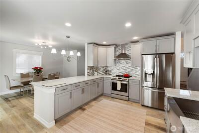 Bright & spacious updated home with newer roof (7 y. old), heat pump(5 y. old). tankless water heater (3 y. old). interior paint, exterior paint (last year), millwork, flooring, kitchen, and bathrooms. In highly desired Tacoma neighborhood w/no through traffic! Beautiful open concept home w/cathedral ceilings in living room w/gas fireplace, dining room, and kitchen w/eat-in nook. Large fully fenced lot with room for RV/boat parking. Very quiet and clean neighborhood, within minutes from freeways, restaurants, and other amnesties. Must see to appreciate.