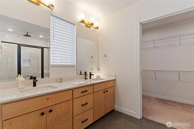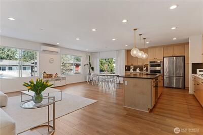 Former model home, premium corner unit, and first time on market—this is the one buyers have been waiting for. Experience refined modern living in The Lofts at 15th, a boutique luxury community by Toll Brothers. Ideally positioned as a corner unit, this residence offers enhanced privacy, abundant natural light, and sophisticated northwest contemporary design. Featuring 3 bedrooms and 2.5 baths, this home showcases high-end finishes including quartz countertops, full-height backsplash, stainless steel appliances, under-cabinet lighting, and a waterfall island perfect for entertaining. The open-concept layout connects the kitchen, dining, and living areas, extending to a covered outdoor space with a gas line for year-round use. As the original model home, it features designer-selected upgrades and has been meticulously maintained by the original owner—offered for the first time. HOA dues include water and sewer. All appliances stay. Enjoy a private attached 2-car garage with EV charg