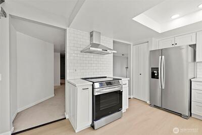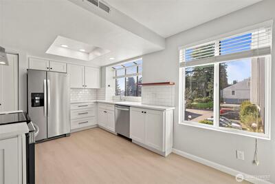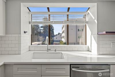 Beautifully updated end-unit condo in the heart of Shoreline, just minutes to light rail, shopping, and everyday conveniences. This bright, open “great room” layout offers seamless living and dining space, perfect for both relaxing and entertaining. The remodeled kitchen features quartz countertops, soft-close cabinetry, stainless steel appliances, and a cozy breakfast nook with added storage. Two well-separated bedrooms provide privacy, including a spacious primary suite with a fully updated en-suite bath and generous closet space. Enjoy abundant storage with an oversized utility room, private deck storage, an additional assigned storage unit, and covered parking. Well-maintained community with strong amenities and a new roof for added peace of mind. Move-in ready and ideally located—an excellent opportunity for low-maintenance living in a prime Shoreline location. Well-funded HOA.