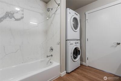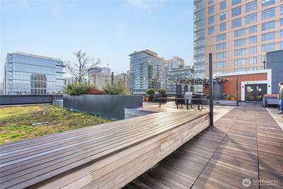 Experience DT Bellevue living at Mira Flats! Unbeatable location. Walking distance for shopping, dining and entertainments. All the best that Bellevue DT offers at your doorstep. The like-new one bedroom unit on top floor features open living space with contemporary cabinetry, quartz countertops and SS appliances, big walk in closet and convenient laundry in the unit. Secured garage parking with EV-charging station. One designated parking spot. Enjoy luxury amenities including concierge service, fully equipped club room, meeting room, free bike storage, dog wash station, courtyard, rooftop deck with fire pit, BBQ, pet relief area. No rental cap. Strong HOA.