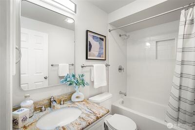 Price Improvement! Rare opportunity for a 4-bedroom in English Hill at an incredible value. At the end of a quiet cul-de-sac and surrounded by towering evergreens in the coveted Northshore School District, this beautifully maintained home offers the kind of updates and comfort buyers hope to find already done. Rich hardwood floors bring warmth to the main living spaces, while tile and new carpet add comfort underfoot. The kitchen flows easily into the surrounding gathering spaces and features a charming garden window—the perfect sunny spot for herbs, houseplants, or simply enjoying views of the backyard while you cook. When Northwest evenings turn cool, a cozy gas fireplace insert creates the perfect place to unwind. Upstairs, two newly remodeled bathrooms bring a fresh, modern touch, while a brand-new furnace provides year-round comfort and peace of mind. Step outside and the lifestyle continues. A stunning ironwood deck—both beautiful and incredibly durable—overlooks the landsc