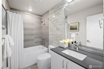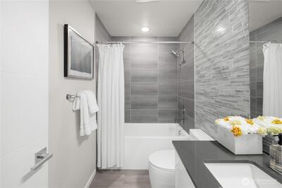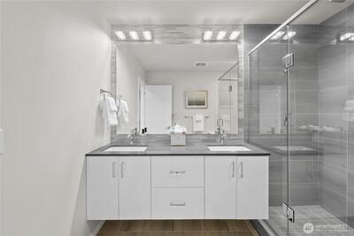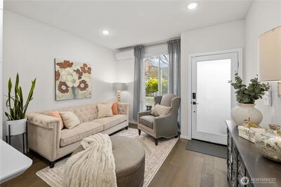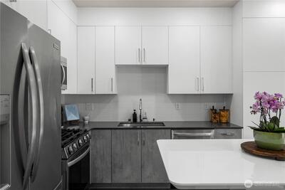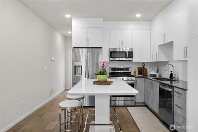 Urban living in the heart of North Beacon Hill. This thoughtfully designed home blends clean architectural lines with abundant natural light and warm, contemporary finishes throughout. The open-concept main level is ideal for everyday living and entertaining, featuring wide-plank oak flooring, a chef-inspired kitchen with quartz countertops, premium stainless steel appliances, built in pantry & seamless flow between the kitchen, dining, and living areas. Large windows enhance the bright and inviting atmosphere. Upstairs, the primary suite offers a private retreat with a spa-inspired bath designed for both comfort and style. Additional bedrooms provide flexibility for guests, a home office, or creative space. The expansive private rooftop deck showcases territorial views with glimpses of the Seattle skyline and Mount Rainier, perfect for entertaining or relaxing at sunset. Modern amenities include air conditioning, smart home features, energy-efficient systems, in-unit washer and dry