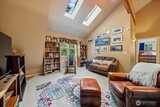 Storybook charm meets island serenity in this Cape Cod Craftsman on Anderson Island. Set on a spacious double lot, this 3-bed, 1.75-bath home offers a rare blend of character, functionality, & quality. The grounds are truly something special—meticulously landscaped to evoke an English garden, creating a peaceful, private retreat where wildlife abounds. A detached 2-car garage adds versatility with 258 sq ft of loft space for use as an art studio, office, or creative space, along with addt'l rec area below. French doors lead out to a covered patio/carport for outdoor living, plus 2 addt'l outbuildings for shop or storage space. Inside, you’ll find a warm & inviting layout with 2 bedrooms on the main level & an updated full bath. The living area features hardwood floors, solid core doors, & a stunning stone gas fireplace, providing convenience & warmth. A light-filled sunroom offers flexible living, ideal for a reading nook, dining area, or just a quiet corner to relax. Upstairs, fin