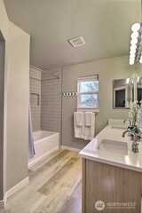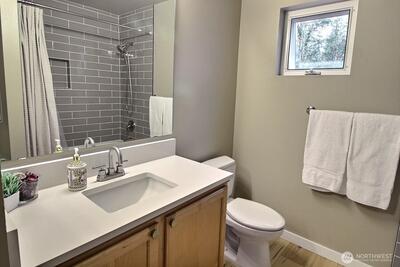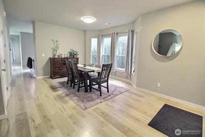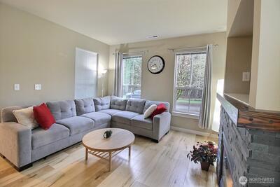 Terrific location! Just a block from Cascade View Elementary, and a couple blocks from shopping, dining, parks, and the YMCA. Or stay home and entertain in the private back yard. Living room has great natural light, with windows on 3 sides, plus a view of Kinsey Triangle Forest. Spacious dining room with a large bay window. Updated and efficient kitchen with quartz counters, stainless appliances, and a center island– a great workstation for helpers. Versatile flex space off the kitchen will become whatever you need it to be. Upstairs are three bedrooms, and a desk nook set at the top of the stairs. The primary suite features a large walk in closet and a bath with double vanity. Spacious 2 car garage with alley access.