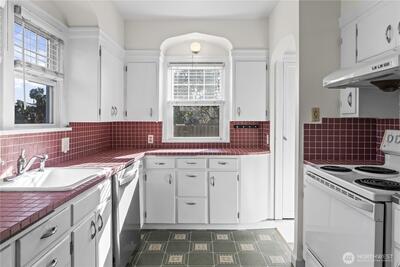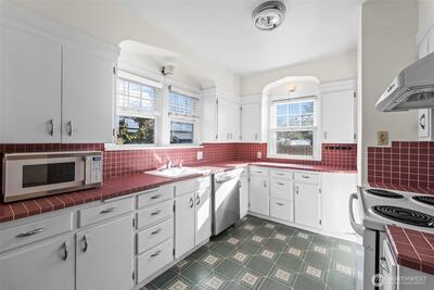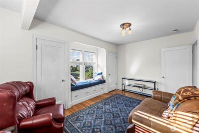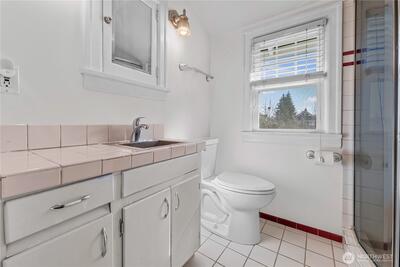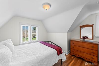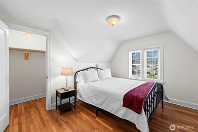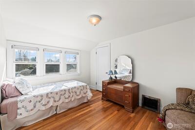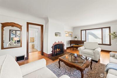 Lovingly cared for 1930 Tudor-style home offers timeless charm, urban convenience, & rare future potential. Original details throughout, including coved ceilings, picture-frame molding, glass doorknobs, and leaded glass built-in buffet & tiled fireplace. The breakfast nook & dining room creates warm, inviting spaces for everyday living & entertaining. Featuring 4 bedrooms, den, & 2 bathrooms, the home boasts impeccable oak hardwood floors, double-insulated windows & cedar siding. The many updates include a newer furnace & heat pump (rare in a vintage 2-story home), 200-amp electrical panel, & interior/exterior paint two years new. With 2,070 sq ft of finished living space plus an 1,199 sq ft unfinished basement, the home offers flexibility & room to grow. The fully fenced lot with large patio creates a private oasis & opportunity for outdoor entertaining. There is ample parking with the 2-car garage, driveway & off-street parking. This property is minutes away from the Sounder Train St