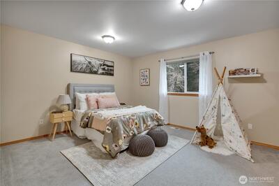 Find peace and serenity in this stunning Carnation home. Set on 5 beautiful acres, this 4,540 sqft home offers space, light, and Northwest beauty at every turn. Featuring 4 bedrooms (Plus an Office) and 3.5 baths, each room is filled with natural light from expansive windows, and vaulted ceilings. A grand foyer welcomes you with warm wood floors and an elegant wood banister, while the living room is bathed in sunlight. The oversized kitchen boasts Cambria counter tops, a brand new double oven, and opens seamlessly to a generous dining area. The thoughtful layout of the home lets you host large gathers and the patio space creates a unique indoor-outdoor entertainment space. The spacious primary suite easily accommodates a king bed and sitting area, complete with a cozy stove, large walk-in closet, and private ensuite with dual sinks and a walk-in shower. The finished lower level offers a massive bonus space ideal for a library, game room, or second living room, featuring a fireplace and