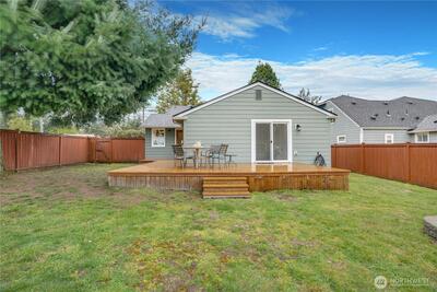 Whether you are stepping into homeownership or seeking the ease of one-level living, this North Tacoma home puts you right where you want to be. Tucked into a sidewalked neighborhood near Proctor, Jefferson Park, and the Mason Union loop, you are moments from morning coffee runs, farmers market weekends, and some of the best local spots Tacoma has to offer, with quick access to Highway 16 for an easy commute. Set on an extra-large corner lot, this home offers space, extra parking, and easy access to the detached garage. A fully fenced backyard, beautiful new cedar deck, and direct access from the primary suite create the perfect setup for relaxing evenings, entertaining, or letting the pups play. Inside, the home feels fresh, functional, and thoughtfully updated. New windows fill the space with natural light, complemented by brand new interior and exterior paint, updated lighting, and new heaters. The layout lives larger than expected, with a dedicated dining room, walk-in pantry off t