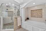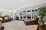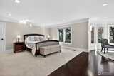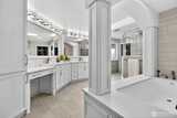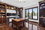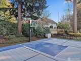 Welcome to a truly exceptional estate tucked away on a quiet cul-de-sac, where luxury, privacy, and lifestyle come together in spectacular fashion. Spanning over 5,469 sq ft, this stunning home sits on a beautifully curated, park-like lot surrounded by mature trees, offering rare seclusion and incredible curb appeal. From the moment you arrive, the craftsmanship is undeniable—lush landscaping, architectural lighting, and tranquil water features set the tone. The outdoor experience is unmatched…entertain under the covered open-beam living space with skylights, relax in the built-in spa, or host unforgettable evenings with heaters, sound system, fire table. A fully lit sport court for pickleball, tennis, and basketball plus a powered cabin-style outbuilding adds versatility and fun. Inside, rich walnut flooring, soaring 8’ doors, and custom millwork create a warm yet grand feel. The chef’s kitchen shines with Sub-Zero, Wolf gas cooking, double ovens, Bosch dishwasher, and custom