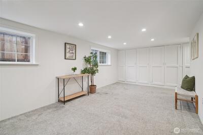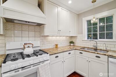 Classic 1923 Craftsman refreshed with thoughtful updates while maintaining its original character. Main floor features a primary bedroom and an updated bathroom (2018) with heated floors. Exceptionally spacious kitchen offers generous room to cook and gather, complete with granite counters and cherry wood flooring. Newly refinished hardwood floors run throughout, adding a clean, cohesive feel. Lower level includes a generous family room with second gas fireplace, along with an additional bedroom and full bathroom—ideal for guests or flexible living. Conveniently located with easy access to transit and downtown Seattle.