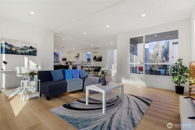 Step out your back door and onto the Sammamish River Trail — this brand-new home offers direct private trail access from a protected greenbelt setting, just minutes from the shops, restaurants, and acclaimed wineries of downtown Bothell and Woodinville. Newly built by SmartBuild and situated within the Northshore School District, this move-in-ready residence delivers the quality and peace of mind of new construction in a rare trail-side location — with easy access to Microsoft, University of Washington Bothell, and Highways 405 and 522 without sacrificing the quiet and privacy of a greenbelt retreat.The home lives large with 4 bedrooms, 3.5 baths, vaulted ceilings, and an open floor plan centered on a chef's kitchen with island seating — equally suited to everyday living and entertaining. A private deck overlooks the greenbelt, a fenced yard adds outdoor flexibility, and a 2-bay EV-ready garage plus an additional parking pad completes the package. A standout feature is the privat