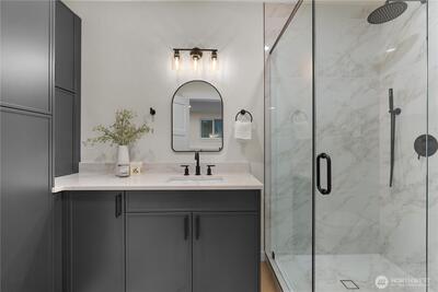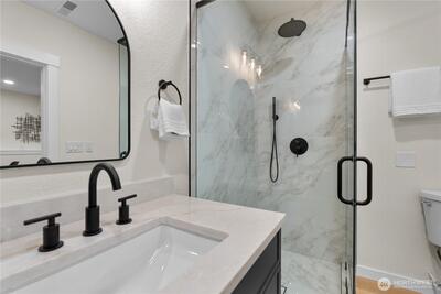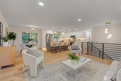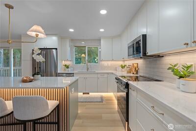 Stunning fully remodeled residence offering refined, move-in ready living on a spacious lot in Lacey. Thoughtfully reimagined with a bright, open concept design, this home showcases wide plank LVP flooring, fresh designer paint, and abundant natural light throughout. The chef-inspired kitchen features quartz slab countertops, new cabinetry with under cabinet lighting, and brand new stainless steel appliances. Recent upgrades including a new roof and furnace provide lasting quality and peace of mind. Bathrooms have been elegantly updated with modern finishes, creating a cohesive, high-end feel throughout. Step outside to a fully fenced yard with fresh hydroseed and a deck ideal for relaxing or entertaining, with ample space for outdoor enjoyment and future possibilities. Conveniently located with easy access to I-5, JBLM, and a wide range of shopping, dining, and recreational amenities, and served by the well-regarded North Thurston School District, this home offers a rare combination o