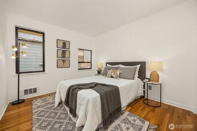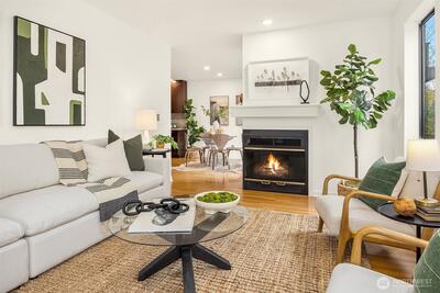A Capitol Hill condo that just feels like home. This 2-bedroom, 1.75-bath condo offers space and layout that are hard to come by, with two private patios and two secured, covered parking spaces. Tucked on a quiet street just moments from Volunteer Park, Broadway, 15th Avenue East, and neighborhood favorites like Victrola Coffee Roasters and The Harvest Vine, the location balances peaceful living with everyday walkability. Inside, a thoughtful floor plan with defined, generous spaces lives more like a standalone home than a typical condo. A wood-burning fireplace anchors the living room, while abundant windows bring in natural light. The kitchen is functional and inviting, with granite counters and tile backsplash, seamlessly connected to the main living areas. Two outdoor spaces enhance daily living: a cozy patio off the dining area, perfect for morning coffee, and a larger patio with French doors opening from the living room, ideal for hosting or enjoying warm evenings. The primary su