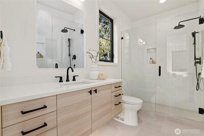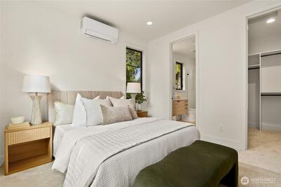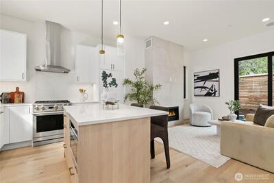 Serene, beautiful new home by Kirkland's premier local luxury home builder, RD Homes. Located in quiet, highly desirable neighborhood conveniently located to freeway, downtown Kirkland and Bellevue. Just blocks to area shops, restaurants, parks, trails and schools! Rarely available attached garage! Modern, elevated level quality, design and finish! Spacious, open flowing floor plan featuring chef's kitchen with Monogram appliance package. Comfortable upper level with two bedrooms and two baths. Stunning designer modern lighting and hardware. Custom, oversized windows throughout offer plenty of natural light. Premium sound system. Ring door bell, security system. Broan HRV Ventilation. Private yard space with irrigation. Garage EV ready, room for storage.