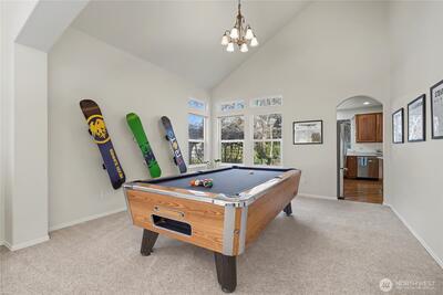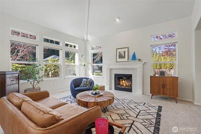 Elevate your lifestyle in this exceptional Cedrona residence by Sherman Homes-a refined Kingston Contemporary 2-story designed for those who value space, privacy & effortless entertaining. Perfectly positioned on a premier end-lot, the home makes an immediate statement w/commanding curb appeal, a 3-car garage, curated exterior updates & permanent architectural trim lighting. A grand 2-story entry unfolds into an impressive formal living room crowned by soaring cathedral ceilings, flowing seamlessly into an elegant dining setting & a chef’s kitchen appointed w/premium appliances, highlighted by a 5-burner GE Profile gas cooktop. Dual fireplaces on the main level create warmth & ambiance, while a newer high-efficiency furnace & heat pump ensure year-round comfort. The primary suite is a true sanctuary-complete w/a generous lounge/office/fitness space, its own fireplace, bespoke built-ins, dual custom walk-in closets, and a spa-inspired bath featuring updated shower & sauna. Extensive u