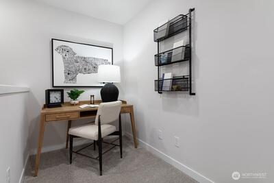 What's Special: South Facing Lot | Multi-Gen Suite | Oversized Deck | Loft. New Construction – Ready Now! Built by Taylor Morrison, America's Most Trusted Home Builder. Welcome to the A22 at 13205 NE 127th Way Unit C in Senderos! This gorgeous and versatile home offers functional living across three beautiful levels. Enter through the charming lower-level porch into the foyer, leading to a convenient bedroom and bathroom. The main level centers around an open-concept kitchen with a large island, dining area, and great room. This space is perfect for entertaining! Sliding glass doors open to a covered deck, blurring the lines between indoor and outdoor living. Upstairs, a dedicated tech space provides a haven for homework or hobbies, while the luxurious primary suite boasts a walk-in closet and private bathroom. Two additional bedrooms and a shared bathroom complete the upper level. Kirkland offers scenic parks, waterfront adventures, and unforgettable sunsets. Its vibrant downtown is