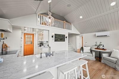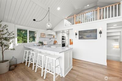 Set along one of Gig Harbor’s most coveted bays, this Nantucket-inspired beach cottage is a true coastal gem. With 104 feet of low-bank waterfront on Wollochet Bay, it offers the perfect everyday retreat. Thoughtfully remodeled and re-envisioned from the inside out, the home lives like new while preserving its coastal character. Wrapped in hand-dipped cedar shakes, it feels like a seaside escape from the moment you arrive. Inside, vaulted shiplap ceilings and abundant natural light create an airy, inviting atmosphere, while quality craftsmanship and timeless finishes shine throughout. French doors open to a generous wraparound deck, perfect for relaxed mornings and stunning sunrises. Enjoy a dreamy kitchen complete with marble countertops, a farmhouse sink, paneled appliances, and a Dutch door that welcomes in the coastal breeze. A loft with sweeping water views offers a cozy space for a second bed or family room. Downstairs, the daylight basement hosts a serene primary suite with a