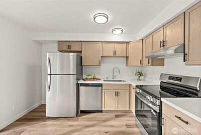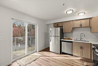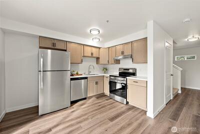 Step into Turnkey Living in this Freshly Updated Throughout, 3 Bedroom, 2.25 Bath, Two-Story Condo that Truly Lives Large! The Light Filled Heart of the Home Showcases the Fully Refreshed Kitchen Featuring New Cabinetry, Deep Sink, Stainless Steel Appliances, & Gleaming Quartz Countertops—Sure to Impress! All New Interior Paint, Light Fixtures, White Doors, Hardware, & Trim! Easy-Care LVP Flooring on the Main Level & Brand New Carpet Upstairs! Updated Bathrooms Complete with New Stone-top Vanities, Toilets, & Fixtures! The Primary Bedroom Boasts Its Own Private Bath! The Large Utility Room Offers Abundant Storage Space! Efficient Radiant Heat Keeps Things Cozy! Interior Fire Sprinkler System, Private Balcony, & Convenience with 2 Dedicated Parking Spots Right in Front - Guest Parking, too! No Pet Restrictions & No Rental Cap! Located in the Desirable Puyallup School District (school bus stops in the community), with Amenities, Good Samaritan Hospital, Pierce College, YMCA, Transit, &