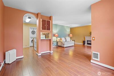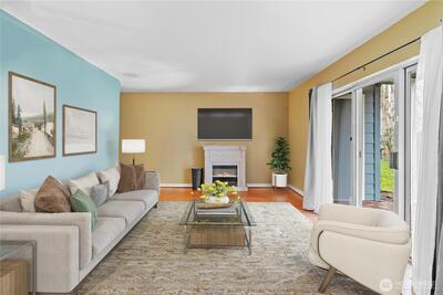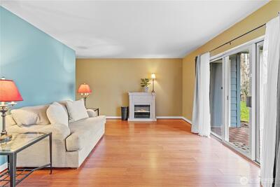 Ground-floor condo with color, comfort, and character in Tacoma’s desirable Northwest area. This charming and spacious home is located in the well-maintained Narrows East Condo Community, just minutes from SR 16, shopping, dining, and War Memorial Park. Enjoy the peaceful natural setting while relaxing or BBQing on the covered patio, with a community gathering area just a short distance away.Inside, newer flooring and paint create a fresh, inviting feel, while abundant storage adds everyday convenience. The large living room offers plenty of space for entertaining, complete with an electric fireplace for cozy evenings at home. The primary bedroom features an attached bath with shower, while the second bath with tub offers separate access from both the office/second bedroom and the hallway. With two gated entries, to this community a wonderful place to call home.