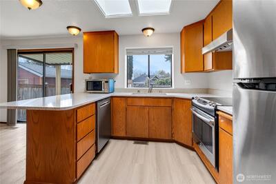 Welcome to this well-maintained single-level brick home in the heart of Sumner—offering comfort, quality, and exceptional livability. Only a 6 minute walk to Loyalty Park and a 12 minute walk to downtown shopping. Featuring 3 bedrooms and 1.75 baths, including a primary suite with attached ¾ bath, this home provides a functional layout ideal for a variety of lifestyles. Inside, you’ll find luxury vinyl plank flooring throughout, abundant natural light, and a clean, move-in ready feel. The kitchen is both clean and functional, featuring quartz countertops, stainless steel appliances, and ample workspace for everyday living and entertaining. Step outside to a large, fully fenced backyard, perfect for pets, play, or gatherings and offering both space and privacy in a quiet setting. Located in a peaceful, walkable neighborhood, this home offers outstanding convenience with close proximity to the Sounder train station, freeway access, and everyday amenities—making it an excellent