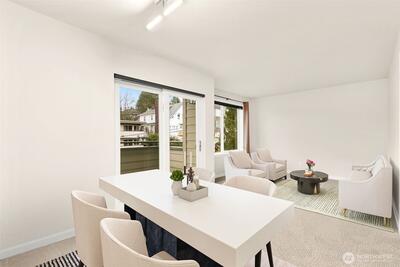 Quaint 2-bedroom condo in the heart of Wallingford with new interior paint, new carpet AND unbeatable access to everything Seattle has to offer! Located just one block from major bus lines, you’re only a quick ride (bus + light rail connection) away from most of the city. Enjoy Lake Union & Space Needle views from your own private west-facing balcony & the communal rooftop deck - a quieter orientation that helps minimize I-5 traffic noise. This condo includes a dedicated parking space in the secure gated garage, eliminating the hassle of street parking. Enjoy a private storage unit on the garage level, protected by multiple secured entry points—ideal for all your adventure gear. Perfectly positioned near I-5 for an easy commute while still feeling centrally located in one of Seattle’s most beloved neighborhoods! No rental cap or special assessments & strong HOA!