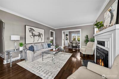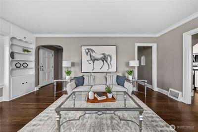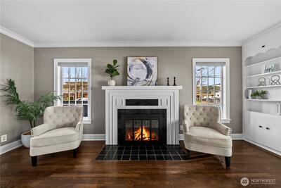 Timeless character meets modern comfort in the heart of downtown Sumner in this 1929 charmer. Situated on a beautifully manicured 10,000 sq ft corner lot, this exceptional 2,400+ sq ft residence offers the perfect balance of charm, space, and lifestyle. The beautiful kitchen features new appliances, granite countertops, white cabinetry, a farm-style sink, and an abundance of natural light. The dining room offers original corner built-in hutches to showcase your collectibles. Inside, you’ll find rich original hardwood floors. Multiple living areas, anchored by two fireplaces, create a warm and inviting atmosphere throughout. The expansive rec room with built-in bar is ideal for hosting, game days, or relaxed evenings at home. The oversized primary suite is a true retreat with a large walk-in closet. Also, a generously sized guest bedroom upstairs that is thoughtfully designed to provide comfort and flexibility for a variety of living needs. The main floor also offers anothe