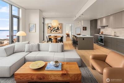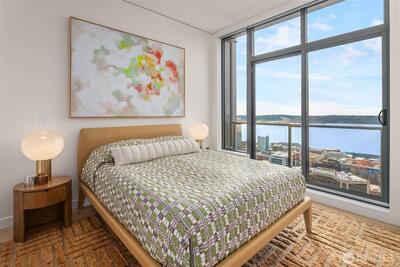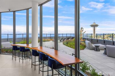 Spire Condominiums, positioned at the apex of Belltown, South Lake Union, and Denny Triangle, offers iconic Space Needle, downtown, and Puget Sound views unlike any other new condominium in Seattle, with seamless access to top retailers, restaurants, tech hubs, arts, outdoor recreation, and entertainment. This expansive 2-bedroom, 2-bath residence features stunning downtown and Puget Sound views, a chef’s kitchen with Bosch appliances and island, a spacious primary bedroom that comfortably fits a king bed, and includes parking. Residents enjoy a full suite of luxury amenities including concierge service, a top-floor fitness center, pet run, 40th-floor clubroom, private dining, outdoor terraces, co-working spaces, conference room, theater, movement studio, and more. Buyer must register broker on first visit.