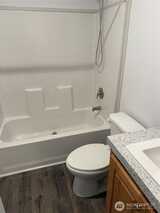 NEW HOME! Fully landscaped with a beautiful windmill palm tree, black and white decorative gravel, large accent rocks, and venetian red stepping stones. Laminate floors throughout resemble dark walnut and provide incredible contrast with the white walls and ceiling. The alder cabinets in the kitchen look perfect with the new counter tops. The kitchen island adds an abundance of counter space and the hanging lights add a level of modernity to the home. The house comes with brand new appliances and fixtures throughout including a washer, dryer, microwave, large farm sink, garbage disposal, dish washer, and refrigerator. The bathrooms have excellent counters, large cabinets, and the master bath has a spacious shower bath. The home is 2x6 wall construction, sheetrock throughout, vaulted ceilings, trimmed out window sills with vinyl dual pane windows. Lots of insulation including R40 in the ceiling, R21 in the walls, and R33 in the floors, making this an ideal and energy efficient home. The