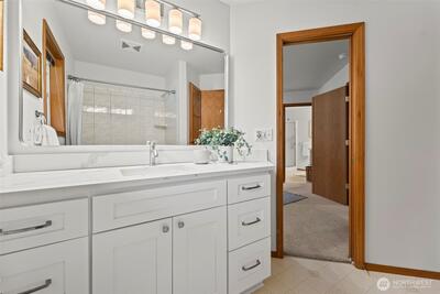 Experience the ultimate combination of privacy and convenience in this meticulously maintained, single-level University Place sanctuary. This light-filled, freshly-painted home features vaulted ceilings and new skylights that capture the Pacific Northwest glow during all four seasons. The functional floor plan includes an updated kitchen with quartz counters and a breakfast bar, flowing into sun-drenched living spaces. Relax in a primary suite with a walk-in closet and private ensuite bathroom. Use the versatile second bedroom as a home office or an inviting guest room, which also has a walk-in closet. Your private backyard is a gardener's dream, bordering a lush greenbelt for seclusion. Enjoy two patios - one covered for year-round entertaining and an open terrace for warm mornings or sunny afternoons. Perfectly located near top shops and dining. Low-maintenance comfort meets park-like tranquility.