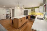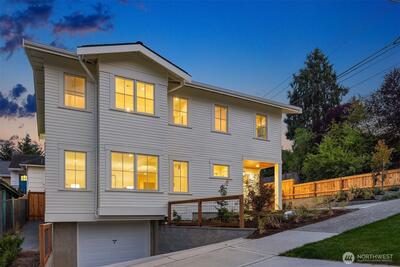 Exquisite craftsmanship + bespoke finishes highlight this home of distinction in Columbia City. Open-concept interior spaces flow seamlessly with natural light streaming thru expansive windows. High-quality construction choices include solid Douglas fir millwork + wood-cased windows. Showpiece kitchen features premier stainless appliances, quartz counters + stylish dual-toned Canyon Creek cabinetry. Primary bedroom suite with soaking tub + heated floors. Eco-friendly elements include Marmoleum flooring + EV conduit in attached garage. Guest bedroom with ensuite on main level. Entertain effortlessly with fenced, landscaped yard. Close to light rail, eclectic dining, groceries, lake + parks.