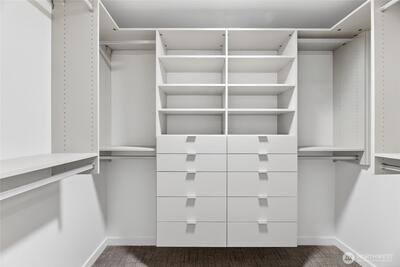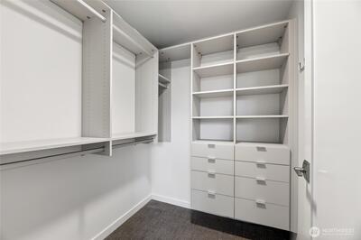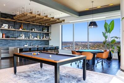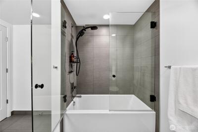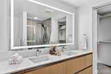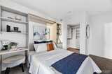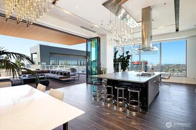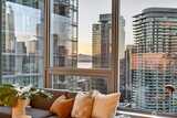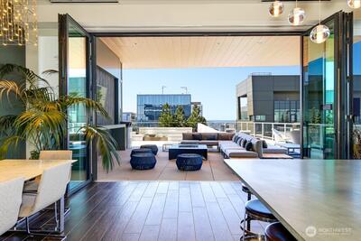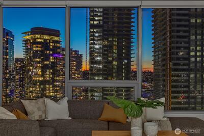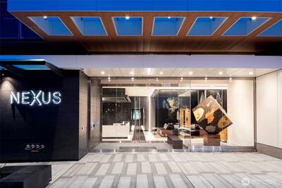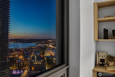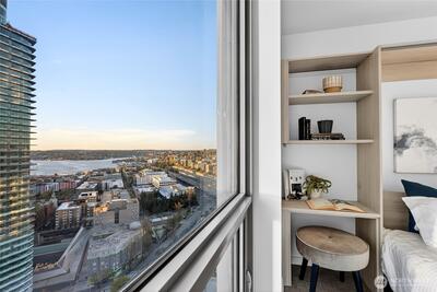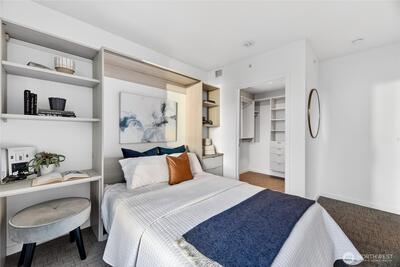 Take in the City, Sound and Lake Union views from this meticulously cared-for 2 bedroom, 2 bathroom condominium at NEXUS. Set on the NW corner, this home delivers an expanse of natural light and tranquility throughout. Features include wide plank hardwood floors, stone bathroom tile, glass enclosed showers & Grohe fixtures. The contemporary kitchen cabinetry is beautifully adorned with slab countertops and backsplash and sleek Blomberg and Fulgor Milano appliances. Special touches like the California Closet systems in BOTH walk-in closets, built-in shelving with murphy bed system in the guest room and Italian-designed motorized shades on all windows make this home a stand out. The amenities at NEXUS take this offering over-the-top. Don't miss the 7th floor fitness facility, dog run with wash spa, state-of-the-art media room and nooks for those Work From Home days. The Sky Lounge and rooftop deck are great places to meet your neighbors on sunny days. There's also a library space, confer