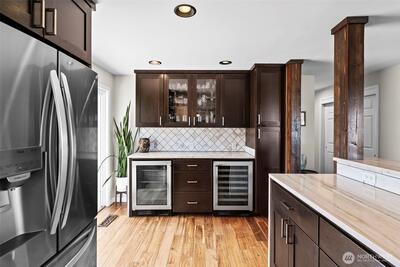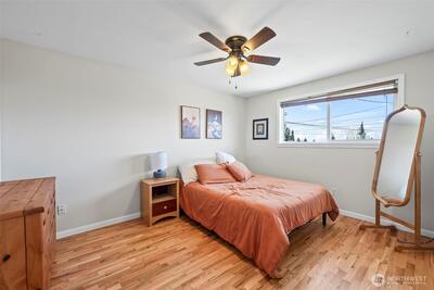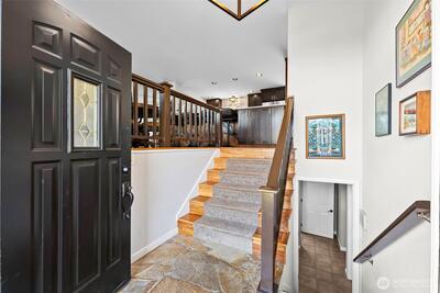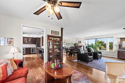 Gorgeous and expansive Narrows area home in North Tacoma in a highly sought after neighborhood on a generous 9,800 sqft lot featuring Olympic Mountain views, bridge and sunsets. Upgrades throughout. Magnificent engineered hardwood floors. The kitchen features cherry shaker cabinets, beautiful quartzite counters, stainless appliances, wine and beverage refrigerators and tile backsplash. The kitchen opens visually to the living spaces and flows seamlessly out to the expansive composite deck. Great configuration for outdoor entertaining! Gas fireplace with slate surround. Large primary bedroom with walk-in closet (built-ins!) and updated private bath and Jacuzzi tub. The main bath is also nicely appointed with double granite vanity, walk-in shower with tile surround and tile flooring. Downstairs you’ll find a terrific family room with river rock fireplace, full bath, another en-suite bedroom and home office/studio. The backyard features lush landscaping, large deck and patio. 2 car gar