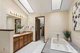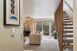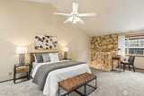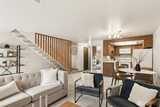 This is the mid-century moment you’ve been waiting for. Ideally located, this townhouse-style home lives like a single-family residence. Bright, private, and thoughtfully designed, the open-concept main level features a dramatic floor-to-ceiling river rock fireplace, clean architectural lines, and effortless flow throughout. A striking floating staircase leads to an oversized loft-style primary retreat with vaulted ceilings and skylights that flood the space with natural light. The flexible layout offers room for a home office, while the ensuite bath features a soaking tub, separate shower, double vanity, and walk-in closet with full-size washer and dryer. Large sliding doors create seamless indoor-outdoor living, opening to a fully fenced yard with dedicated gardening space. Additional highlights include a private one-car garage, new water heater, new carpet throughout, new thermostat, newer dishwasher, a main-level half bath, and no rental or pet restrictions. Located near the new