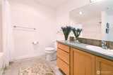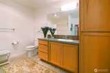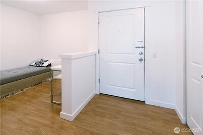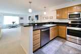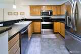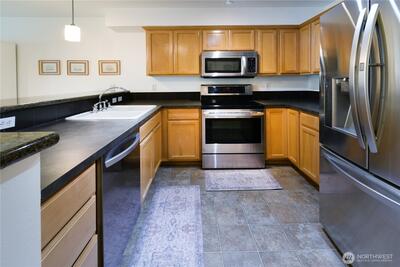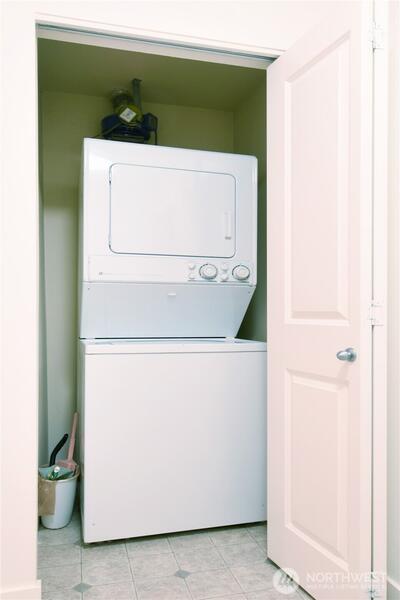 Don't miss this one bedroom + Den at Thorton Creek Condos that is bathed in light year round. This home features large spaces and plenty of space to work from home! Large balcony off of living room. Bedroom has walk in closet. Oversized bathroom with ample storage. Granite countertop breakfast bar and stainless steel appliances in kitchen with Maple cabinets. In-unit washer/dryer, elevator access with no stairs, and one easy to park in secure parking space with secure storage adds everyday ease. Pet-friendly, well-managed building with strong reserves and no rental cap. Low HOA dues. Near groceries, parks, dining, I-5, and the future Pinehurst Light Rail Station (2026).