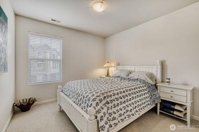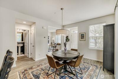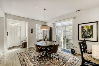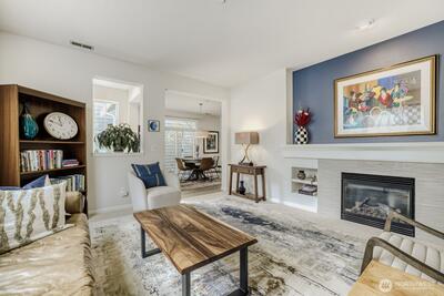 This beautifully remodeled and freshly painted townhome is close to everything in the heart of Downtown Bothell! Abundant light streams in through the large picture windows. The gorgeous updated kitchen is complete with new slab quartz countertops, decorative tile backsplash, deep undermount sink, gas range, stainless steel appliances and LVP flooring, in addition to abundant cabinetry, pantry and a convenient eating bar with pendulum lighting. The spacious and bright living room features newer carpet and a tiled gas fireplace with a custom mantle and built in shelving. On the second level, you'll find a spacious Primary Suite with high inset ceilings, huge walk-in closet and the tastefully remodeled 5-piece bath. Two more bedrooms, a full bath and a separate utility room complete the upper floor. High end window coverings and solid panel doors are found throughout this immaculate home. The interiors were just painted in a soft palette with accent walls...everything is ready and waiti