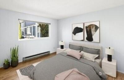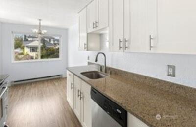 Enjoy bright, west-facing living in this inviting 2-bedroom, 1.75-bath condo in Upper Fremont. Sunlight fills the spacious living room, where a cozy wood-burning fireplace and a private balcony create a warm setting for relaxing evenings. The updated kitchen features beautiful cabinetry, stainless steel appliances, and stone countertops. New flooring throughout and fresh interior paint make this home move-in ready. The generous primary suite includes a private ensuite bath. Additional features include an in-unit washer and dryer, two tandem parking spaces, a secure indoor storage area, and a shared garden behind the building with extra shed storage for bikes. This well-maintained, self-managed building has just five units, low HOA dues, no current assessments, and is pet-friendly with no rental cap. Tucked on a quiet street yet ideally located near Ballard, Woodland Park, and downtown, this home offers the perfect balance of comfort and convenience.