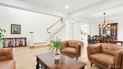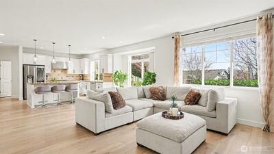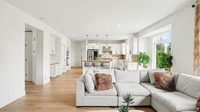 Breathtaking MOUNTAIN & VALLEY VIEWS highlight this immaculate Murray Franklyn home in highly sought-after Palisades at Snoqualmie Ridge! Nestled on a QUIET CUL-DE-SAC just steps from Snoqualmie Ridge Golf Club, this is a rare opportunity. Thoughtfully REMODELED with abundant natural light, NEW HARDWOOD FLOORS, BRAND NEW PAINT, and BRAND NEW CARPET + PREMIUM PAD. Formal living & dining flow into a SPACIOUS GREAT ROOM and CHEF’S KITCHEN with newly updated cabinets, EXPANSIVE ISLAND, and SS HIGH-END APPLIANCES. BRAND NEW DESIGNER stone FIREPLACE WALL with custom built-ins creates a striking focal point. Main level offers FULL BATH, PRIVATE OFFICE, and FLEX ROOM/BEDROOM. Upstairs features a LUXURY PRIMARY SUITE with SPA-INSPIRED BATH and views, plus 3 additional bedrooms. Enjoy a newly designed & manicured yard with BRAND NEW FENCE. Additional highlights include 3-CAR GARAGE, A/C, and NEW 50-YEAR ROOF. Located in TOP-RATED SCHOOLS.