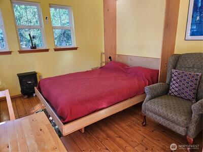 Rare Opportunity in Colony Surf! Discover this unique, fully furnished gem tucked away at the quiet end of the lake. This versatile two-story floor plan is designed for maximum utility, featuring an upper-level studio with a kitchen, 3/4 bath, and a space-saving Murphy bed—all dishes and utensils included!The lower level offers an integrated office space, built-in storage, a hide-a-bed for guests, and convenient in-unit laundry. Need more room? The detached 200 sq. ft. bunkhouse provides the perfect escape with its own desk and additional sleeping quarters.This property is fully prepared for modern convenience and outdoor living, featuring an RV hookup and professional wiring for both a generator and a hot tub. From the furniture to the forks, everything stays. Just bring your toothbrush and start lakeside living today!