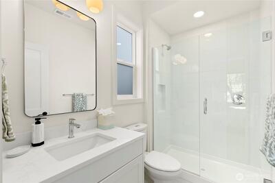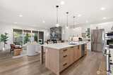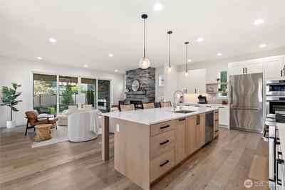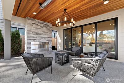 Discover this North-facing, meticulously maintained Rose Hill home that's better than new construction! This impressive residence welcomes you with wide plank hardwoods and high-end finishes at every turn. The living area features a warm gas fireplace, while a dedicated mud room and 2-car garage offer everyday convenience. The main level also includes a private guest ensuite bedroom. The expansive kitchen features Fisher & Paykel appliances, a gas range, an oversized island, and a walk-in pantry — ideal for hosting gatherings. The formal dining room comes with custom built-ins and a wine fridge. Upstairs, you'll find four spacious bedrooms, a private office, a flexible bonus room, and a conveniently located laundry room. The grand primary suite is a true retreat, boasting a private deck, a dream walk-in closet, and a luxurious five-piece bath with heated floors. Step outside to a covered patio with a second fireplace, wood ceiling, and outdoor heaters, creating an excellent space for