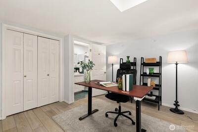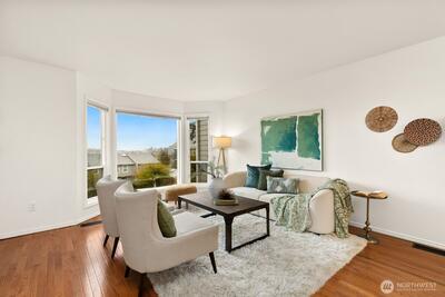 Gorgeous View Townhome in Magnolia! Imagine starting every morning with a front-row seat to the sunrise over Salmon Bay and the Ballard Bridge, with the Cascades painting the horizon. Tucked away on a quiet dead-end street, this east-facing retreat offers rare privacy and sweeping views from nearly every window. The top floor features a unique circular layout that maximizes natural light, leading to bright bedrooms including a serene primary suite with walk in closet. Whether you’re hosting summer BBQs on the private patio off the kitchen or exploring Fisherman’s Terminal and Lawton Park just steps away, this home perfectly balances tranquility with easy access to restaurants and activities. Just down the street is trail access from the cul-de-sac leading to Lawton Elementary School and the dog park. There are plenty of take out places within blocks and easy bus access to downtown but if you prefer to drive there is an attached private garage. Bonus: A flexible ground-floor suite