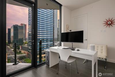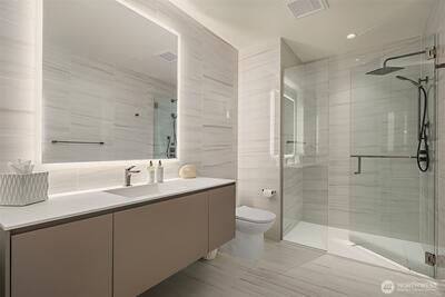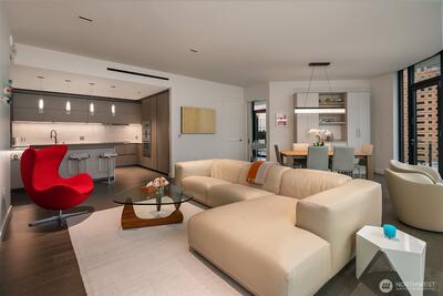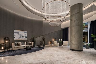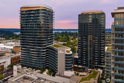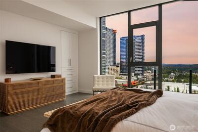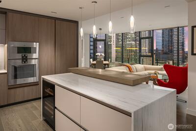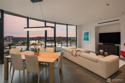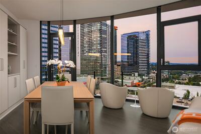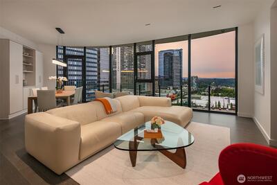 Experience elevated urban living at Avenue Estates. This better-than-new, sunny SE-facing corner residence showcases an open layout with 9.5' ceilings, wide-plank wood floors and sweeping city and lake views through a wall of floor-to-ceiling windows. The gourmet island kitchen features Ernestomeda cabinetry, marble and Caesarstone countertops and top-of-the-line Gaggenau appliances. The primary suite offers a spa-like bath with Laufen soaking tub, rain shower and double vanity plus custom closet built-ins. The home also includes 2 parking spaces with an EV charger and storage unit. Enjoy resort-style amenities with 24/7 concierge, fitness center, owner’s lounge, InterContinental Hotel plus the best of downtown Bellevue: shopping, dining & more all at your doorstep. Don't miss the rare opportunity to own this popular and otherwise completely sold out floor plan!