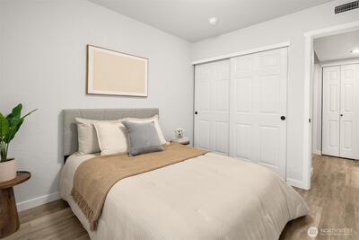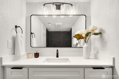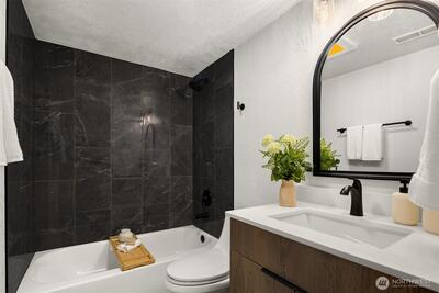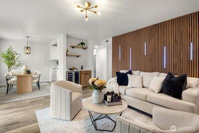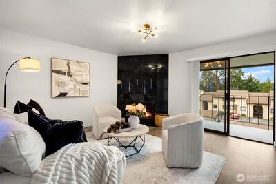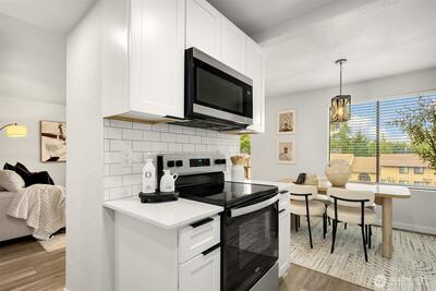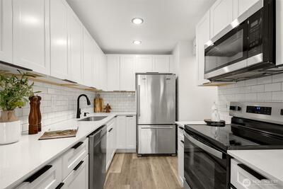 Welcome to this beautifully remodeled top-floor condo in Kent, offering the perfect blend of style, comfort, and functionality. This spacious 3-bedroom, 2-bath home features a fantastic layout with high ceilings and large windows that fill the space with natural light, creating a warm and inviting atmosphere throughout. Enjoy peaceful top-unit living with added privacy and quiet. The fully updated kitchen showcases brand-new soft-close cabinets, modern countertops, and all-new appliances, thoughtfully designed for both everyday living and entertaining. The home also features wonderful new flooring and fresh paint throughout, giving it a clean, cohesive, move-in-ready feel. The bathrooms have been completely renovated with new ceramic tile, stylish vanities, and updated fixtures. Retreat to the spacious primary suite featuring a large closet and a beautifully updated bathroom, offering comfort and privacy. The living room is a true highlight, featuring a designer accent wall, a co
