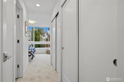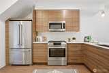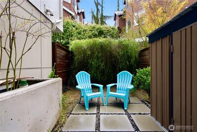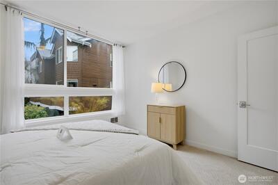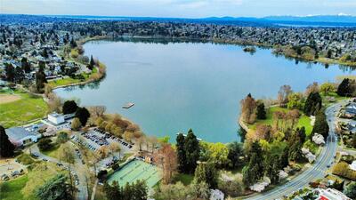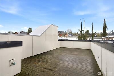 Unbeatable Location on a quiet street with steps to Green Lake! This bright modern townhouse has a fabulous view of the lake and mountains on an expansive rooftop deck. Fresh paint, Brand-new carpet. 2 beds, 1.75 baths. Boasting high-end finishes, dark hardwoods and floor-to-ceiling windows. Open-concept kitchen with SS appliances. Tankless Gas Water heater. A tranquil patio garden for you to enjoy the morning coffee. A designated parking space off the alley. One or two blocks away from PCC, Pilates Hub, light rail station and so on. Quick access to buses to downtown Seattle. Enjoy the vibrant style with everyday comfort!