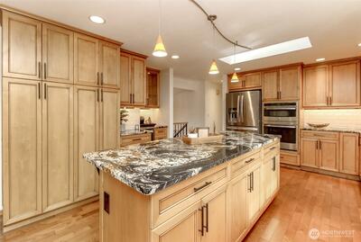 Meticulously maintained home in the heart of University Place & in the highly regarded UP School district. Enter into the living room w/gas fireplace, newer carpet & custom window treatments. Up 1/2 flight of stairs is the remodeled kitchen including granite counters, a large island w/bar seating, pantry storage, wine fridge, custom lighting & formal dining space. French doors lead out to a gorgeous Trex deck. Down the hall are 2 bedrooms, a full remodeled bath, & a Primary Suite w/double closets, newer carpet & remodeled bath w/tile floors & shower surround. Large bonus room downstairs w/newer carpet, wood burning fireplace, remodeled 3/4 bath, and bonus XXL storage space. Backyard is an OASIS, fully fenced with a 2 story Trex deck, lower patio & tons of space for relaxing, gardening, & entertaining. 50 year roof in 2017, New garage doors, New concrete driveway, new water heater, all this just moments from schools, shopping, golf.