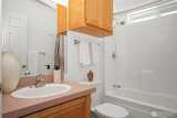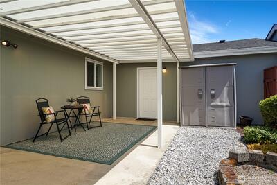 Welcome to sought-after Wilderness Villa, a vibrant 55+ community! This beautifully maintained 3-bed, 2-bath home offers comfort, style, and convenience just steps from the clubhouse and amenities. The spacious living area features vaulted ceilings, skylights, opens to private backyard. The bright kitchen boasts natural light, eating bar, abundant cabinetry, w/ plenty of counter space. Primary suite includes a walk-in large shower, two sinks w/X-Large walk-in closet. Additional highlights include a full laundry room, two-car garage, A/C & Blinds throughout. Enjoy relaxing or entertaining in the private, low-maintenance backyard patio surrounded by easy-care landscaping. Prime location near shopping, dining, and medical services. Great home!