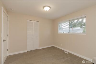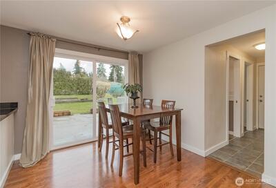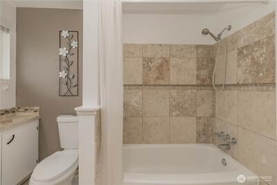 Beautifully remodeled 3-bedroom, 1.75-bath rambler offering stylish single-level living in a prime location! This move-in ready home features refinished original hardwood floors, an inviting electric fireplace insert, and major system updates including plumbing and electrical (2012) and a new water heater (2026). Spacious primary bedroom includes room for a home office or sitting area. Enjoy a fully fenced backyard with a large patio, ideal for entertaining, gardening, or relaxing, plus two outbuildings for extra storage. PSE easement behind property provides added privacy. Conveniently located near shopping, dining, and commuter routes. Turnkey home with modern updates and classic charm—don’t miss this opportunity!