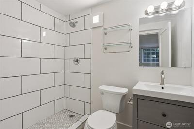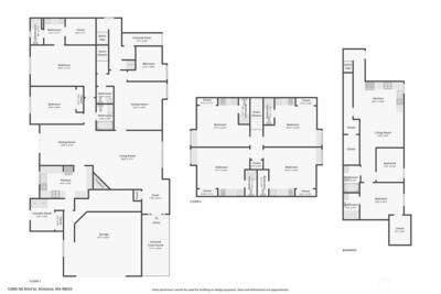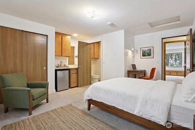 Unprecedented cash flow potential in the heart of Kirkland's booming Rose Hill! Located on a cul-de-sac, this solidly built custom property offers an incredibly versatile layout. The expansive floorplan features a bright 2140 sqft main floor with 2-bed+bonus room; four independent 250 sqft ensuite studios upstairs; and a 900 sqft 2-bed basement apartment ADU built new in 2021. This is the ultimate 'house-hack' - live comfortably on the large main floor while the upper and lower units subsidize your mortgage, use it for multi-generational living, or maximize cash flow as a fully rented investment. In addition to the 2-car lofted garage, 5 additional off-street parking spots can easily accommodate multiple occupants. Seller is a licensed real estate broker in Washington. Photos have been virtually staged. Features recently updated hard flooring, custom solid wood kitchen cabinets with sliding drawer pantry in the main, walk-in primary closets, and ample storage throughout the house. Perf