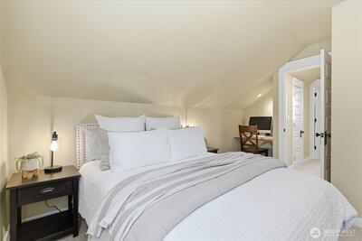 Tucked into one of Fox Island’s many charming neighborhoods, this very well-maintained home offers an inviting blend of comfort, space, and Northwest tranquility. The main level has a graceful flow, with gorgeous hardwoods throughout, from the front office and powder room into a living room with vaulted ceilings & gas fireplace, to the dining area and open/bright kitchen with newer stainless appliances, granite countertops, and elegant cabinetry. Completing the main level is a very cozy primary suite with gas fireplace, dual vanity, soaking tub, double shower, and walk-in closet. Upstairs, there are two additional bedrooms (each featuring a built-in desk nook) and a ¾ bath. Set on a half-acre, the property offers the elbow room and privacy so many buyers are looking for, including a refreshed deck, garden beds, chicken coop, garden shed (w/power and water), firepit, and plenty of space for pets & play. Pride of ownership shows throughout with a new 50-year composition roof; fresh ex