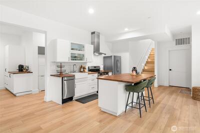 An incredible opportunity awaits with this better-than-new custom home on Driftwood Point! Built in 2022 with thoughtful design throughout, this home blends luxury, function, and versatility. The main level features a stunning two-tone kitchen with a massive island, Fisher & Paykel appliances, butler’s pantry, and under-cabinet lighting, all opening to a spacious dining area and oversized great room with a stone-wrapped fireplace, custom built-ins, and surround sound. The main floor also offers two generously sized bedrooms with walk-in closets and a Jack & Jill bath, along with an exceptional primary suite featuring a spa-like 5-piece bath, dual-head tile shower with mood lighting, and a custom walk-in closet connected to the laundry room. An upstairs loft provides flexible space for an office, media room, or bonus area. The lower level includes a fully equipped ADU with kitchen, living space, two bedrooms with walk-in closets, a Jack & Jill bath, powder room, and separate garage fo
