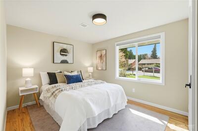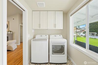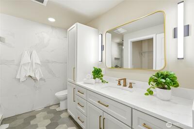 Almost everything in this stunning 1-story home is BRAND NEW! Fully permitted and rebuilt from the studs up in Finn Hill, this 3-bedroom home delivers the kind of turnkey living that’s hard to find. Vaulted ceilings and an open-concept design create a bright, airy feel, while the beautiful, custom designed kitchen—with high-end finishes and quartz surfaces—anchors the heart of the home. No detail was overlooked, with thoughtful upgrades throughout including, a recirculation hot water heater for instant hot water, pot filler, induction oven, EV car charger, Blink cameras, french doors, heated bathroom floors, and epoxy garage floor—bringing a touch of everyday luxury to every corner. The primary suite offers a true retreat with a custom-tiled en-suite and walk-in closet. Every inch of the home reflects quality craftsmanship from refinished hardwood floors to all-new systems including electrical, plumbing, windows, and heat pump with A/C—this home lives as good as it
